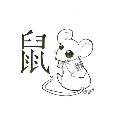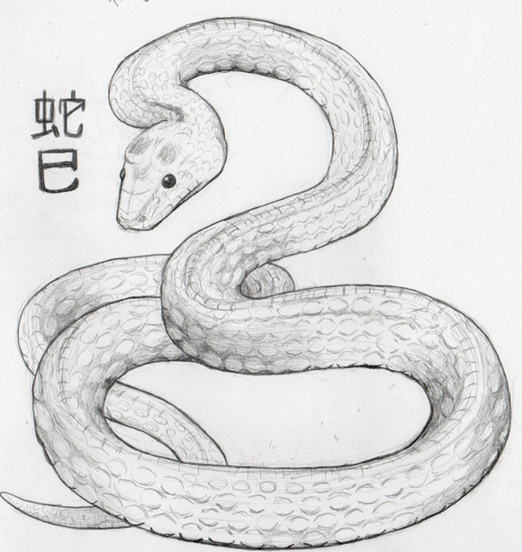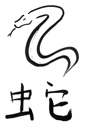The Hànzì (Chinese characters)/ Kanji mean "snake" and "rabbit." In actuality, I found drawing the rabbit's Hànzì character more difficult than even drawing the actual snake. I don't know how that happened, since I have no problem writing it with a pencil, or a brush.