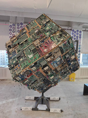 B-Tree is a Cybertrash phytostructure made of printer rollers and PCBs (266x100x100cm, 111kg)Related content