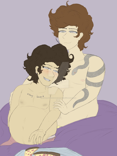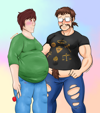 Good day from our very own calm, lovey couple uwu~ Julien is slowly coming to terms with his gains in private for sure- seeing as how Mason doesn't hesitate to grab and gently squeeze and knead Jule's new chub any chance they are together ♥