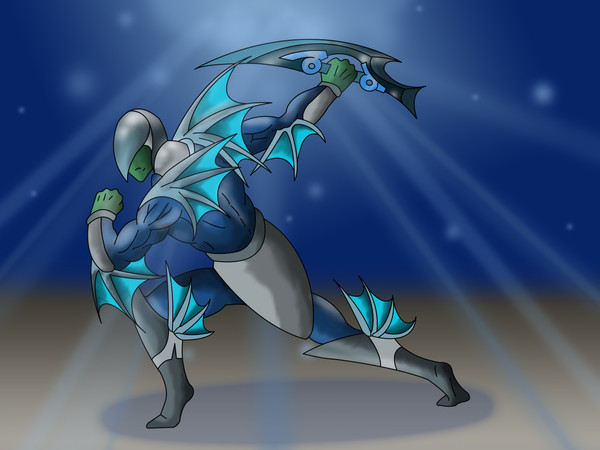 Remember my draft for this guy? Well here he is! (I don't have a backstory yet, sorry)His attacks are Crescent Slice, Oblivion Cape, and Sword Swipes courtesy of the Lunar Cutlass.