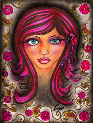 This is a very interesting picture..love the big eyes and lips and the shiny blue highlights in her hair! I'm glad I got to see it!