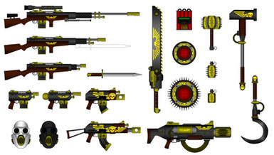 Made by the best armourers on the planet, its furniture is made of local "crimson" Eucalyptus Imperialis tree wood and its mechanical components are of a higher quality than standard Lasguns or Lascarbines. Originally derived from an ancient archeotech design, the Fedorov Las-Rifle packs a greater punch than regular Lasguns and features an unusual high cycle-charge chamber allowing it a rapid pulse mode comparable to fully automatic fire. This pattern is notable for its heavily reinforced energy transfer capacitors, overall durability and being a remarkably robust and easy to use weapon. Legendarily able to stand up to any amount of abuse and keep firing, it is respected over more powerful shoulder arms for its practicality and extreme reliability in almost any condition. Over the millennia, the Fedorov Las-Rifle has been improved and changed many times. There have been dozens of variants, but only a few have made any radical differences in the weapon's function, since all of its variants have the same basic features. This pattern has iron sights mounted along the top of the weapon, a standard rail for scopes (and other attachments) and an integrated bayonet lug (missing on the Lascarbine variant), and can be used as a club at close quarters without risk of damaging it.