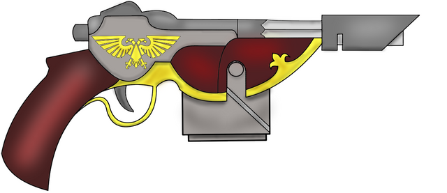 A semi original weapon I made for my imperial world.The Radium Pistol is a small pistol that uses scaled-down radium technology, often favoured as a side-arm by Skitarii Tech-Guards and Tech-priests forced to go into battle directly. This particular pattern was reverse engineered by adept Grigori Yefim Flyorov from a single proper Radium Pistol, taken from the hands of the highest ranking Tech-priestess on Kray Mira after her untimely death. Though, due to the inherent dangers of handling such fearsome and foul weapons, Flyorov Radium Pistols were only occasionally used by its creator and his personal cybernetically-enhanced bodyguards.