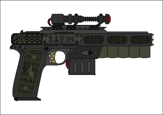 As with my previous post, it's kinda inspired on the Soviet Union and modern day Russia, though this one in particular is based on the norwegian Landstad 1900 Automatic Revolver. Hope you like it!