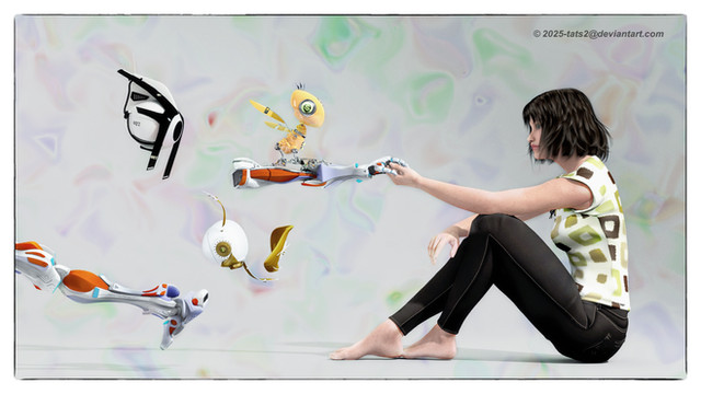 What's the little robot up to? Β His hand is very near where it shouldn't be!! Β Β Β Β