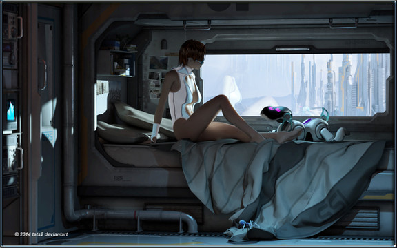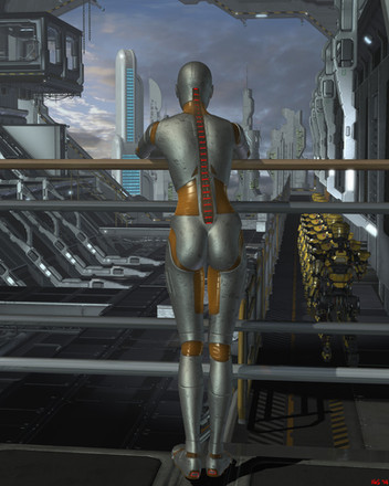 It's a very pleasant artwork and the girl has a beautiful armor with wonderful reflection effects. Love your ScuFi artwork !Β Β *_*