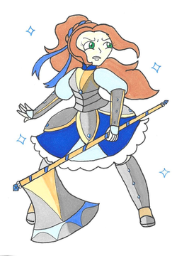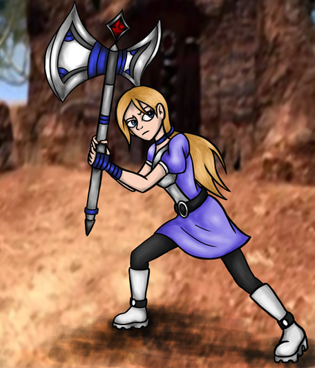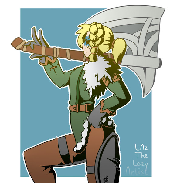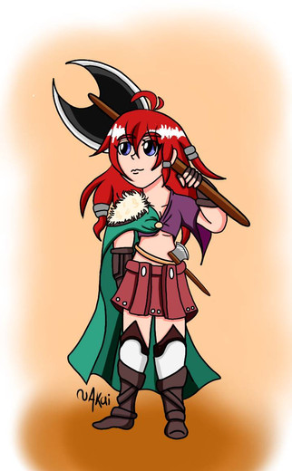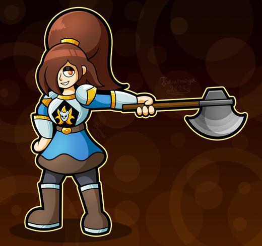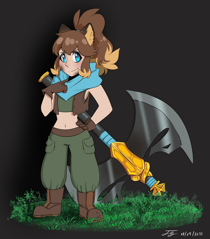 I didn't realise it's been two years since I've last drawn her. Whoops.Here's a new reference for her, finally. She's the protagonist of my game! An axe-wielding mute, ready to do good and help people.