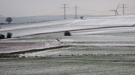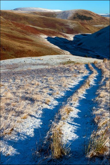 The shape of the land, and the contrast against the sky... The curvy lines of the upper fields, against the wilder slopes and the horizontal lines of the lower fields. I really like that play of contrasts.