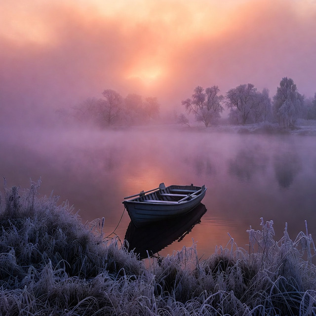 #autumn #boat #dawn #fall #foggy #misty #plants #river #cold_morning #atmospheric
