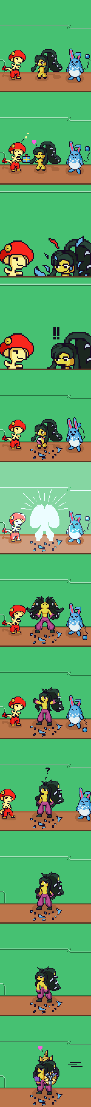 I'm on the fence about the "less text" thing on the grounds that people perceive pixel art as different and difficult, for some reason, and don't realize that it uses the same art principles as any normal drawn art does. People ask me how I do it and I don't know how to answer them because "get better at drawing" is kind of the answer >_> So I figured writing a lot of text explaining concepts and what people should go for, was the best way to help them along. You know, the "this is why I do this", and not simply "this is what I do", because that latter one doesn't help people a lot of the time. Explaining the why is very important when you're teaching somebody something.