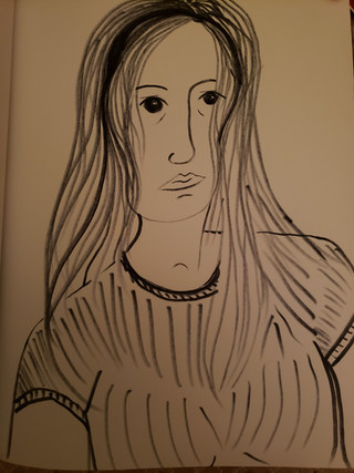 A self portrait I just did. I think it took about...30 to 45 minutes? Maybe a little more. I ought to start keeping track or something. Anyway, I got the idea because I guess there's one of those "tag" things going around where you draw yourself in whatever you're wearing at the moment. You can't really see what I'm wearing because I didn't feel like putting in the details but you can imagine for yourself that I'm wearing a Metallica shirt and blue, fuzzy, polka-dot pajama pants, haha.Mechanical pencil and ballpoint pen on sketchbook paper. Nothin' too fancy.