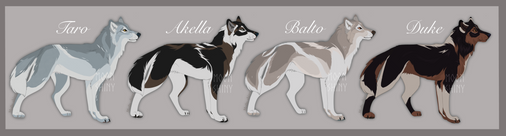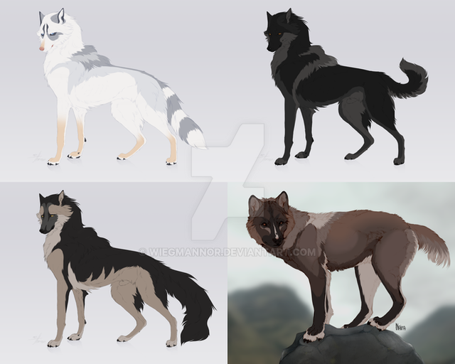 The four main wolves from a story that follows Rahla (except, I'm not sure where Saba fits in). The new wolf on the far right is Spade, and he is the wolf who's violent mate (Hexa) was killed by Rahla. After the incident, Spade coerces Rahla to stay and help him command the pack. She assumes the position of the female alpha, though does not return Spade's romantic interests. She does, however, regard him highly and considers him to be her closest companion.