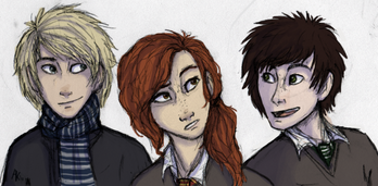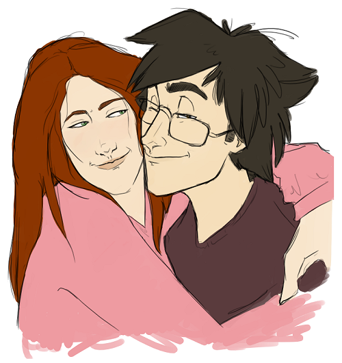Sirius is always hard for me to draw for some reason. I think it's his general lack of school spirit, and I always imagine him with facial hair just to be a rebel. And why the hell do I always draw Lily in my image? I think I need help. D: It's never intentional, I promise.