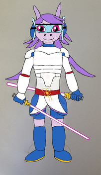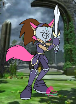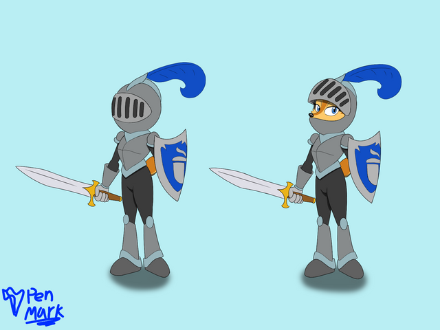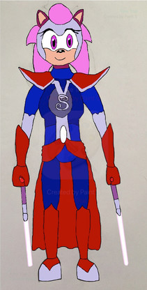 After looking the Nick Jr cartoon 'Nella the Princess Knight' and seeing the armour designed for Sally, I got the idea for making Sally a Princess Knight. And that's where this suit came from.The idea is that Sally builds this armour deliberately in lieu of medieval knights, but with modern touches. Her main weapon is the Sword of Acorns, a magical weapon forged centuries ago for the Acorn family that is able to grant one great power. Its blade is so strong, it can even parry lightsabers, which allows her to spar and duel with lightsaber duellists. Her shield can also block lightsabers and can be used as a bludgeon to stun opponents. The pauldrons have jet boosters built into them, allowing Sally to hover and even fly for a short time.