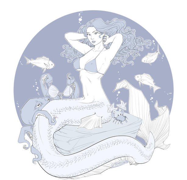 #digitalart #inkart #lineart #mermaid #transformation #mermaidtransformation