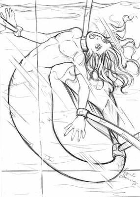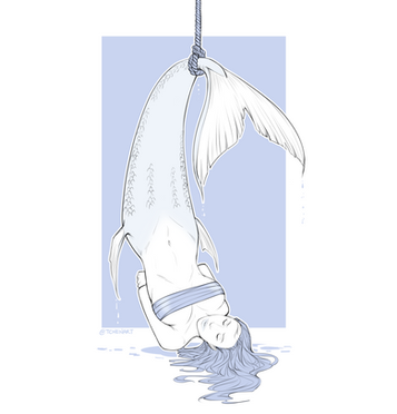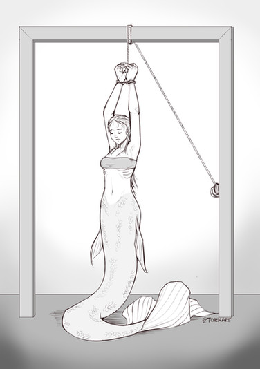 They didn't completely hang her out to dry at least, keeping her somewhere with some water to keep her tail nice and moist.Though she would prefer it more if she wasn't strung up in chains.