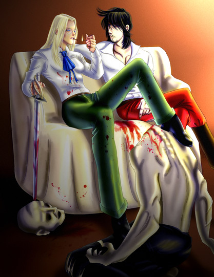 maybe its the sugar, the tiredness, or both.... but Alucard looks very 'Disney's Captain Hook' to me with that smirk.....