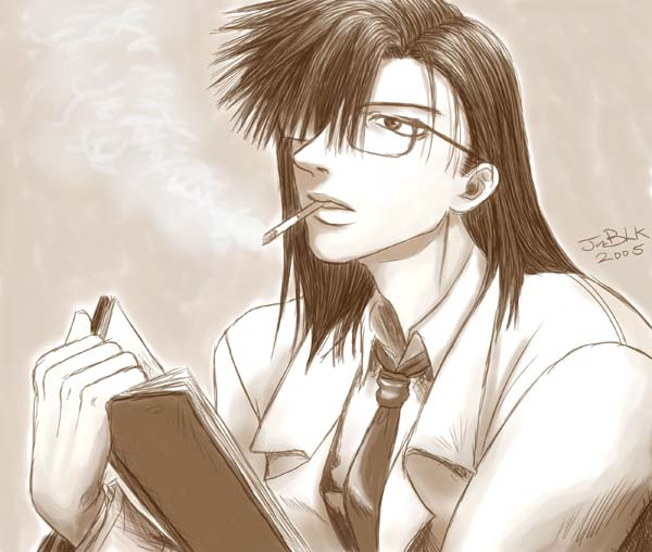 nice painting ^^ I liked his hair slicked back.. it was a nice change. But then again, his hair always changes.... honestly.... it goes shoulder length to waist length to shoulder length again. Same with Integra. Sorry if you've already seen me say this before, but I go on about it all the time