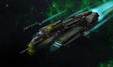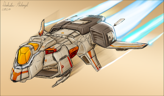 I really wasn't very satisfied with the last ship I drew, so I decided to make a better one. This is what resulted. I am much happier with how this turned out then I was with my last ship.I actually did this one at an angle instead of straight on from above. It was a lot harder to do that way obviously. There are still some parts that don't look quite right. Mainly the right engine (the one one the left side of the picture.) It's not really the right size or shape and so it doesn't look like it really matches the other engine like it should. It's not too bad though and I'm too lazy to fix it.