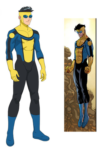 Awesome costume redesign idea! Very fresh, very different, yet still immediately recognizable as Invincible. The top image is especially well done. I was laughing really hard at the "Goes great with blood!" line haha