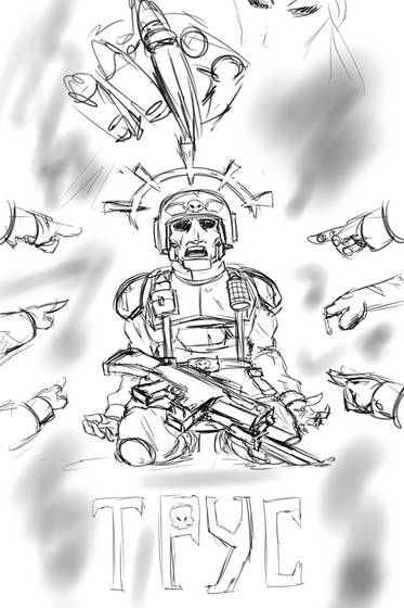 decided to continue the cartoon experiment pic in a scrappy comic strip.For all the space marine fans out there))