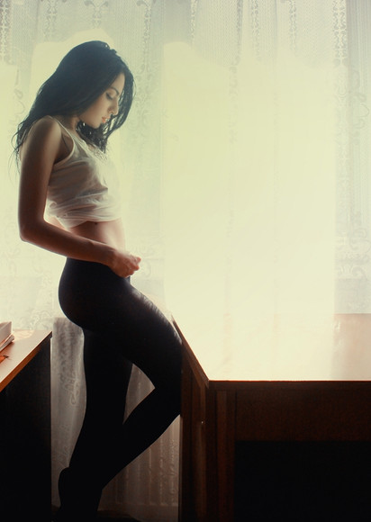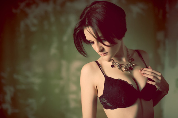 The blackness of her underwear accentuates the beauty of her light skin. Nice choice.