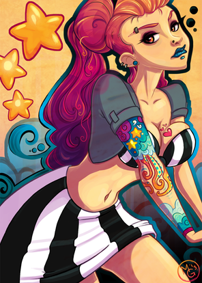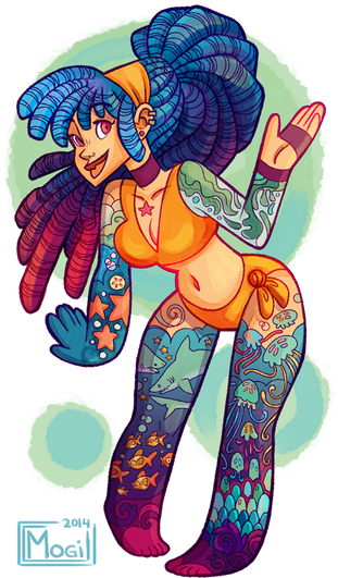Trying to get back into drawing for myself lately. Its been hard but I am finally starting to make it more of a habit. Over the last few weeks, I have decided that it is time to branch out and try new things. So here is my first attempt. Usually, my coloring style is very simple. I wanted to try something a bit more "painterly" (though barely!). I really had fun with this. There are some areas that I know are not working but I will be redoing this piece for the next few weeks and trying out different approaches. So hopefully and update soon. If anyone knows of some awesome photoshop coloring tutorials that would be awesome!So this is a sketch I did for fun a few weeks ago. I was having trouble being creative so I tried this exercise where I took 2 different magazines and opened them both up to random pages. Then I do drew inspiration from both pages. One was a fashion magazine where the girls all had octopi and squids on their heads, the other was a tattoo magazine with this awesome female model who had AMAZINGLY beautiful and colorful dred locks. This is the result.