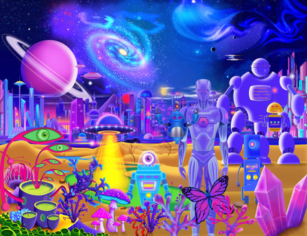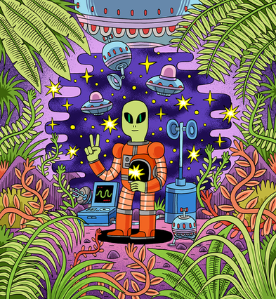 #alien #celestial #drawing #galaxy #green #illustration #nature #night #plantlife #purple #sciencefiction #scifi #sky #space #spaceship #stars #ufo #ancientastronaut