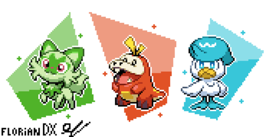 #adorable #cute #fanart #fanartdigital #pixel #pixel_art #pixelart #pixelartist #pixelicon #pokemon #pokemonfanart #pokemonviolet #pixelcommission #pixelpagedoll #pokemonscarlet #sprigatito #fuecoco #pokemonscarletandviolet #quaxly