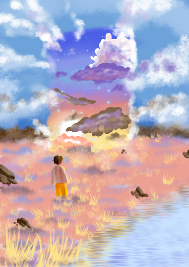 This picture I titled "Hope" because I made it with how I've been feeling about my art journey in mind. There is a lot lacking, a lot of empty space and room for potential, but in the end it's beautiful like that, too-- contentment but still a yearning for the light at the horizon, progress. Super overdramatic stuff but kinda therapeutic to make.