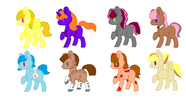 Another set of adoptable ponies, four males and two females.All ponies have been adopted by ~tarbano