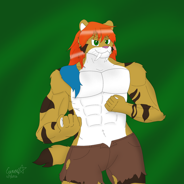 #anthro #cartoon #characterdesign #creaturedesign #digitalart #drawing #feline #muscle #myart #mycharacter #originalcharacter #sabertoothtiger #toon #warrior #art #tealmun