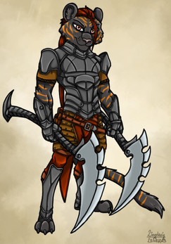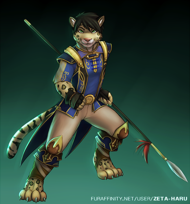 Nkɔi, or Leopard to his human compatriots, hails from the Uwohali Clan--a warrior clan from the Niawu Tribe--and is a notorious sword fighter. In his years of honing his skills with the blade, he has bested some of the best warriors from every race within the Known Galaxy. His swiftness magic has assisted his conquest of his opposition, whilst also garnering him recognition amongst the United Human Federation Council. Thus, when he became of age to enlist and move away from his home clan and tribe, Leopard joined the ranks of the Phoenix Guard and became one of the strongest members of Rat Company. Even though his company has tried to get him to utilize rifles and other small-arms, Leopard never strayed away from his trusty blade.Leopard, and other Beyond-verse topics, is the intellectual property of Beyond_Series_Offical.