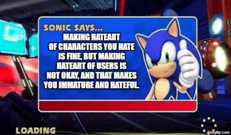 I don't have anything against people telling me why they like something in the Sonic fandom, but part of the reason why I'm a bit on edge is because there are some people who are gonna become hostile with me or, I feel, will look at me like a villain and demonize me just because I like something they don't.Opinions of course are a big problem in the Sonic fandom, and this certain situation is one that I've faced on ASO (been a while since I've mentioned them), where everyone basically treated me like a Nazi because I liked Penders more then Flynn. I'm sure my good old adventure fans can relate to this, although I do agree with some people who point out why exactly there getting hate, but at the same time can't blame them for being mad that there special treat is a game about what big the cat was doing during sonic adventure 2, cause that's so desperately what I want to know...