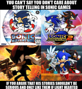 I do not like to say "before was better" but before the story revolved around the Chaos Emeralds, Shadow's past, Sol Emeralds...Β And they had some impact on the series most of the time, it was an adventure you wanted to live because they were important and revealed information about characters or elements of Sonic universe.