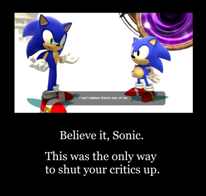 All of this is why I'm glad that I'm just getting Sonic mania. Yes, it is a pandering to classic fans and looks like a rom hack, but I'll take a game like that over two jack asses making a joke out of Sonic and being the reason why everyone shits on the franchise.