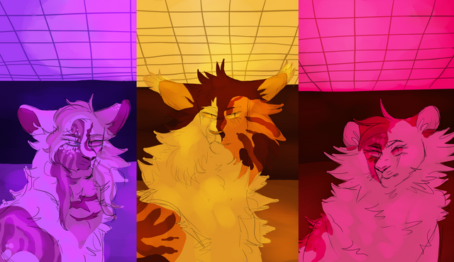 With the borders tended, it is time to return back to the camps! Cats are tired from the days of border upkeep, their nerves and body tense. It is time to relax, and share tongues. Draw/write your character's sharing tongues with other's of their clan! Nothing brings a clan together like a big ol' bath, though no one would mind if the rocks were a bit warmer...blue and bramb are good siblings who i don't give enough credit so like good kiddos,, they comfort each other with a good ol bath