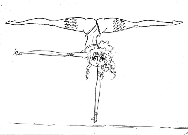 Now...let me state here...that your artwork is miles beyond what mine could ever hope to be. The only reasons that I'm offering these suggestions at all is that, though I can't ever touch your knowledge of proportion...in my younger days, I was actually a fairly accomplished acrobat. ~.^