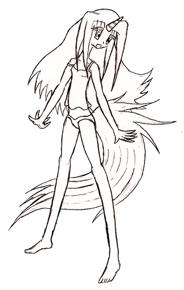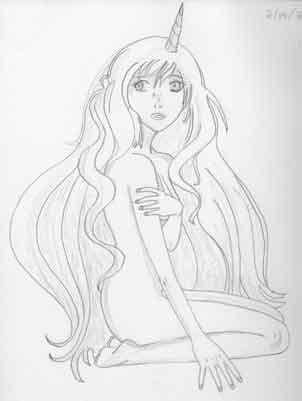 ooo.. really pretty. i really like her wings and she looks nice with long hair. ^^ the only thing that looks sort of off in the picture is that you can't see her one hand because her wing is covering it up. no biggie there though ^^ and as you said, it started as a doodle. ^^