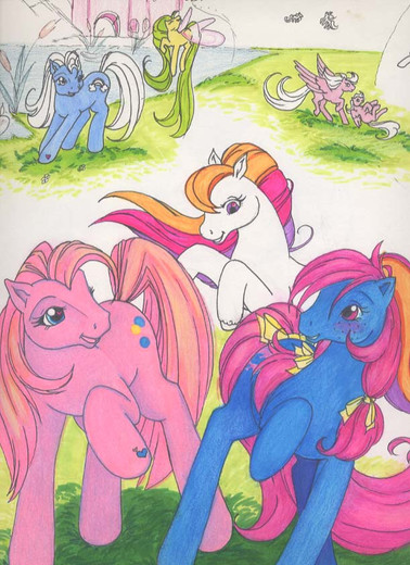 That is such a beautiful picture... I love the colors. ;.; Oh yes. I think I used to have that pony!... Before my parents gave them all away. T_T Anyhoo, wonderful picture yet again! The ponies remind me of Tuneful, how I lub dat pony. :3 GREAT JOB AGAIN!