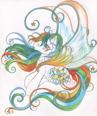 Wowzers! What do you use to color? The rainbow is awsome and... well, the ponie's hair is just amazing, and her expression, anatomy... just... wow.