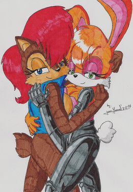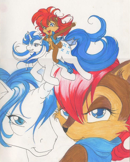 this is princess sally acorn and majesty from sonic and mlp together going for a joy ride!sorry for the lousy scan, I had to cp it together because it was too big