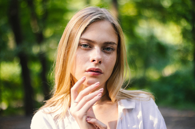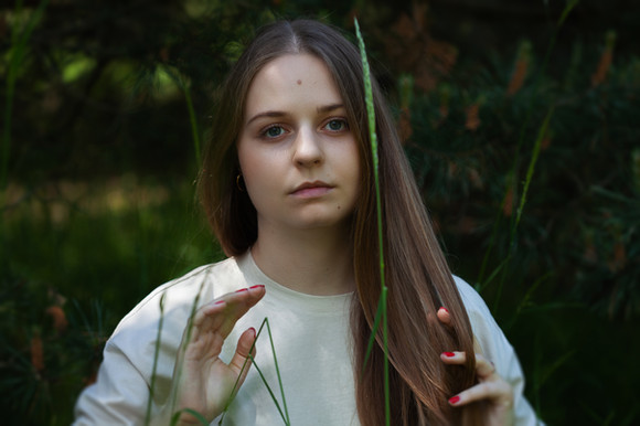 Very nice photo! I love how natural it looks with the model's features seen clearly, and the blurriness of the background really draws your eyes to her. The photo seems a little fuzzy, (could just be my eyes or my computer lol) but very beautiful!