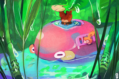 There's something about the coloring and the drawing together that makes this particularly cute. Oh wait, I just realized the Blue Pikmin are all sitting inside a soda can! How cute! *u* (noticed before reading the artist's comment). You did a great job on the coloring! I'm not sure how to describe it, but overall the drawing gives me a Miyazaki vibe, because it's innocent and just adorable.