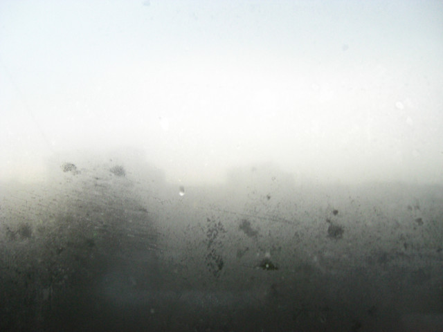 It's actually the sunroof of my car, on a rainy day with condensation. My son pressed his hair into it too