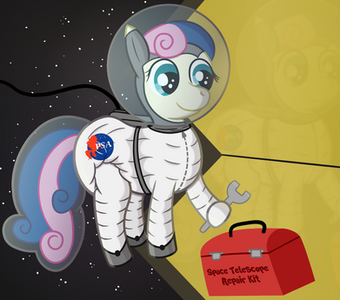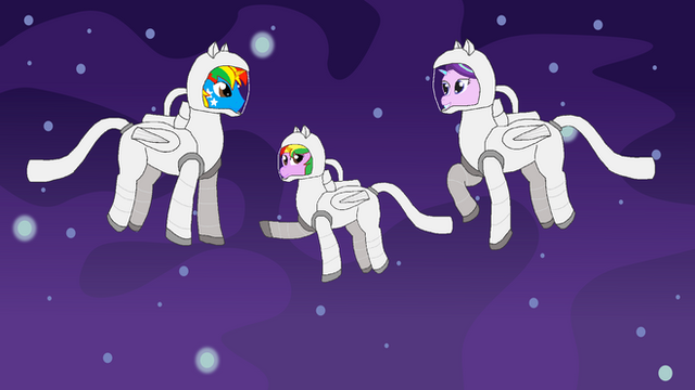 A digital drawing of Rarity, Fluttershy, and Pinkie Pie in spacesuits on the moon. Requested by www.deviantart.com/steamanddieβ¦Related content