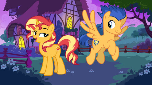 A digital drawing of Flash Sentry and Sunset Shimmer as a couple in love. Requested by www.deviantart.com/3d4dRelated content