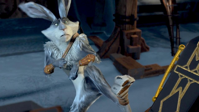 hahaha he looks adorable kicking jack's leg!Bunnymund belongs to DreamWorks