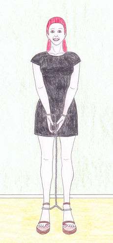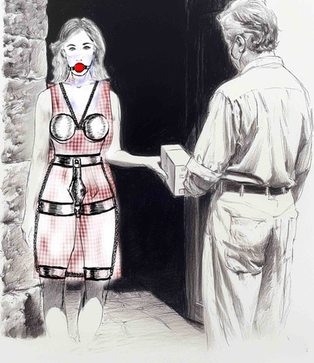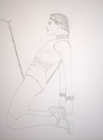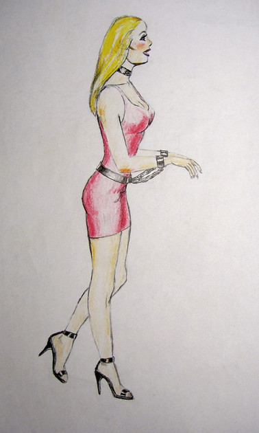 Chained herself up, waiting for him to come home. Her full story here: [link]Finally got around to coloring this one, plus some tweaks.