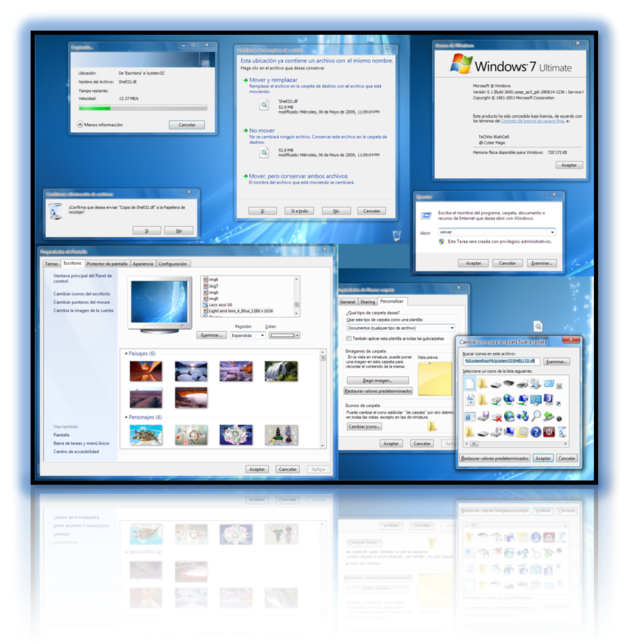 ese shell32.dll lo cree yo,note que cambiaste algunos iconos y las animaciones y algunas imagenes....compadre agradeceria que pusieras los creditos a mi persona ya que le dedique bastante tiempo cuando lo cree,espero que me entiendas y no te tomes a mal mi mensaje es solo que creo que corresponde...